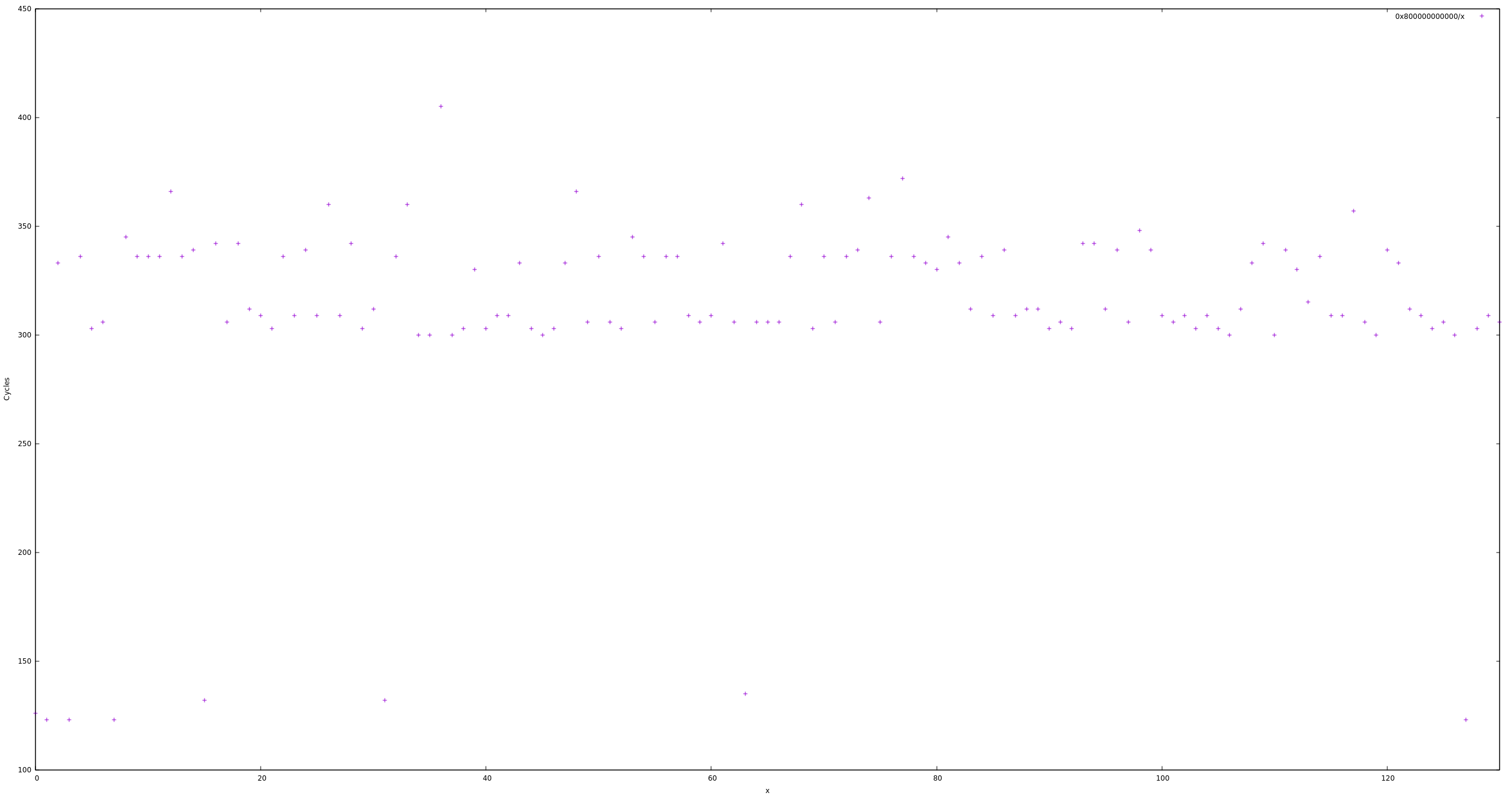 The CPU I’m using in this post is an Intel i7-4790 (haswell). Running the same measurements on other processors architectures will most likely yield different results. I’m describing two experiments I did. First, I look at bits in the divisor and how they influence the timing of the division. And then I look at the dividend and its influence.